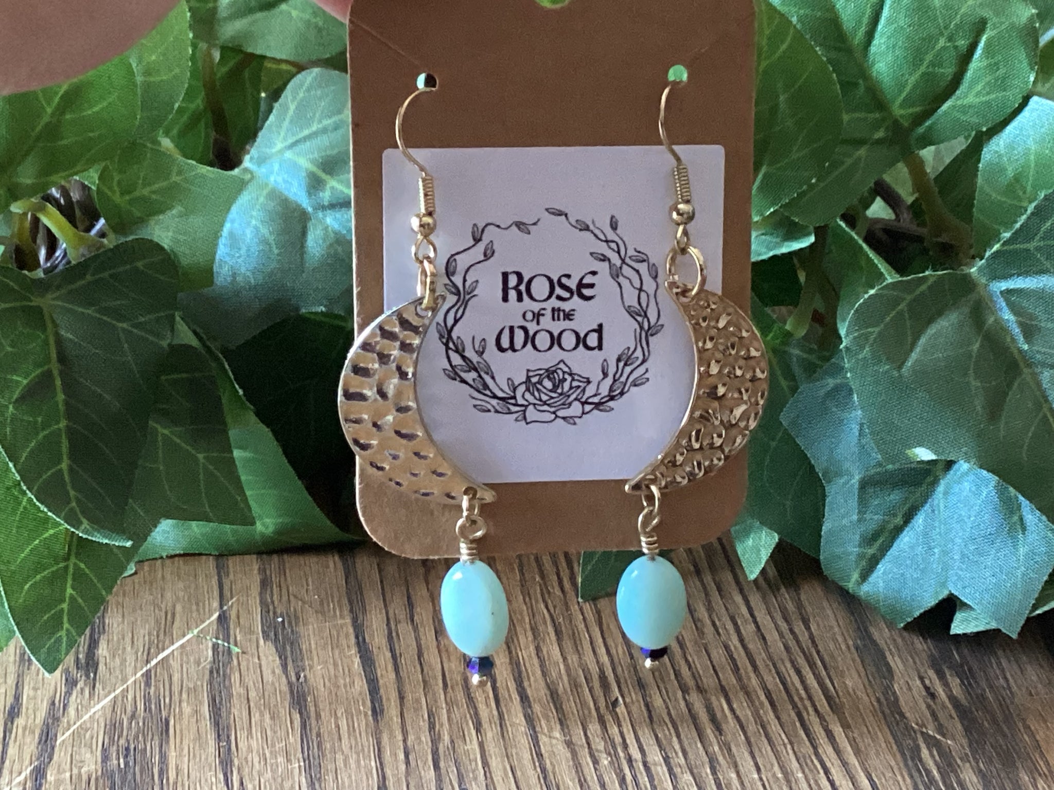 Gold Dimple Crescent~Amazonite Earrings