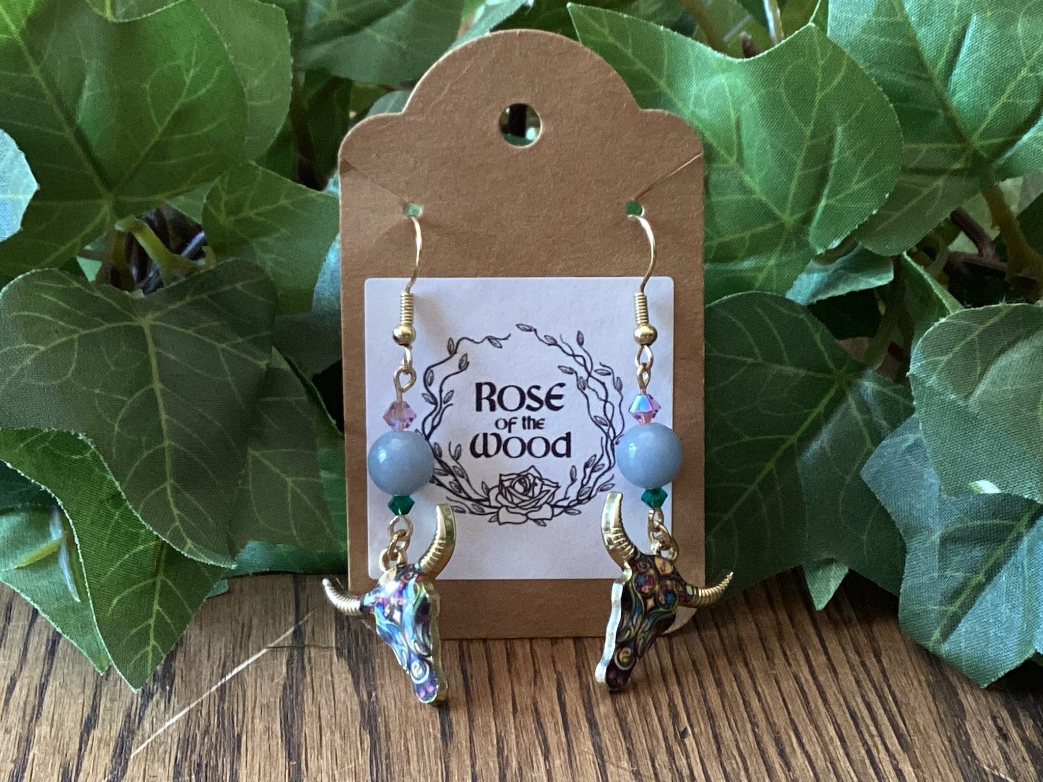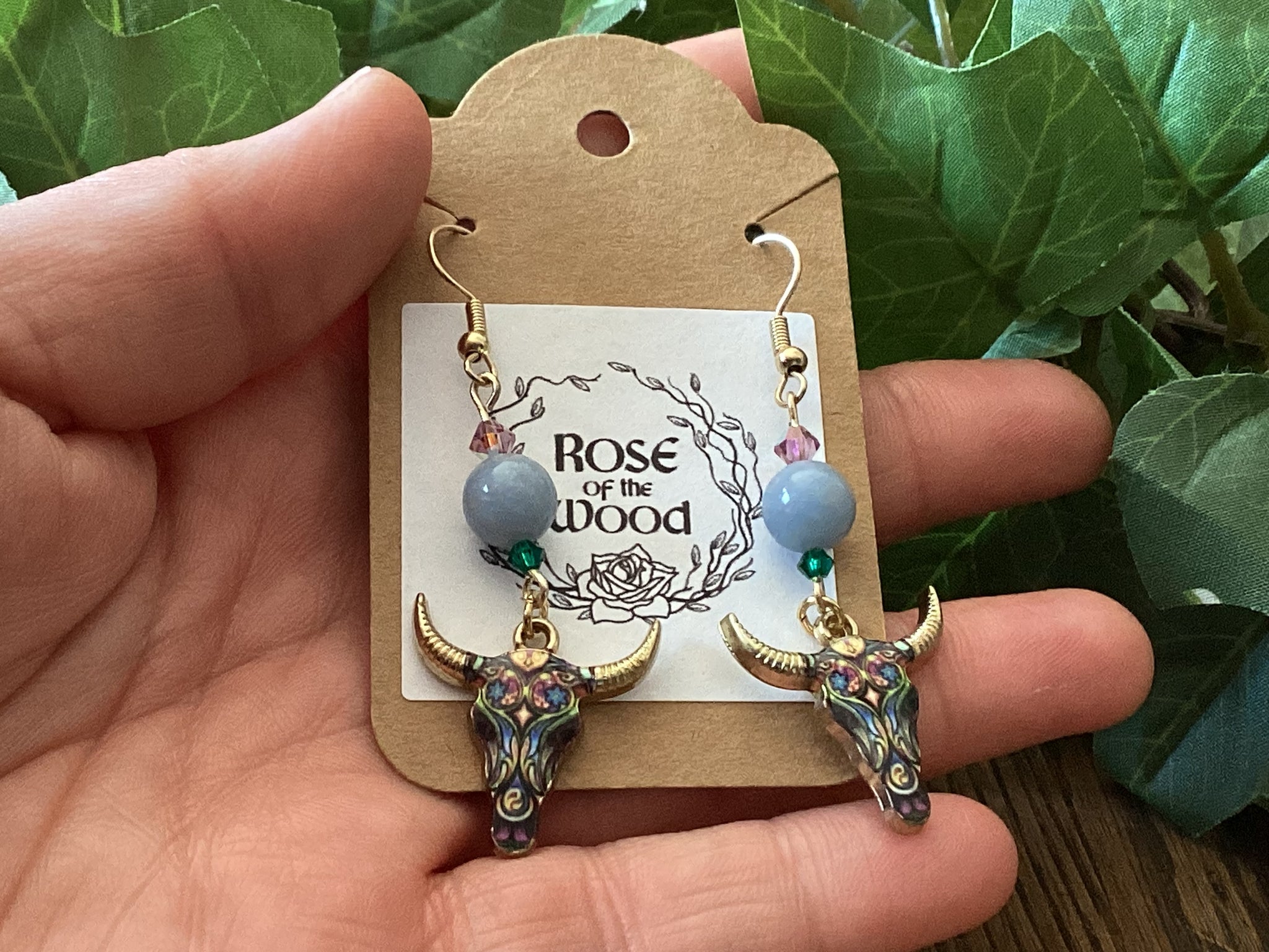Milti-colored gold ox charm with Angelite & preciosa crystal.